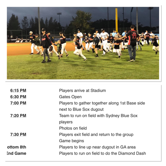 If attending the Sydney Blue Sox game this Thursday 28th at Blue Sox Stadium (Blacktown International Sportspark Gate A, 81 Eastern Road, Rooty Hill). Please pay careful attention to all info. below.